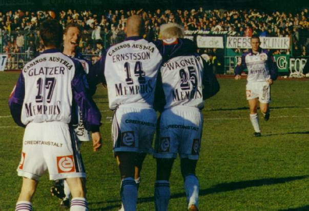 Das war unsere Fußball-Welt noch in Ordnung. Der Jubel nach dem Führungstreffer zum 1:0 durch Michi Wagner (4. Minute)