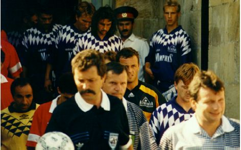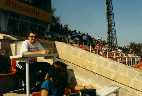 Nach der abenteuerlichen Busfahrt - endlich im Stadion in Sumgait