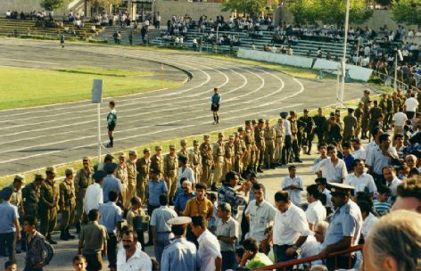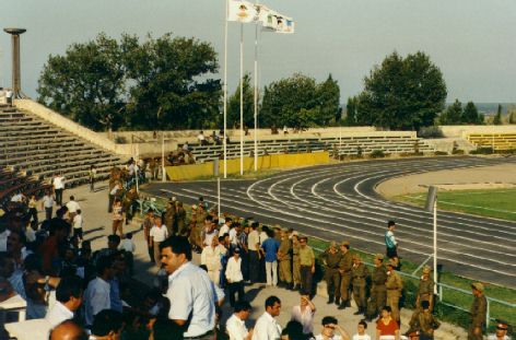 Das Stadion in Sumgait - streng bewacht vom Militär