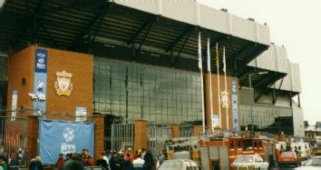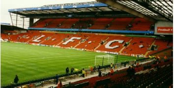 Das altehrwürdige Stadion an der Anfield-Road in Liverpool: